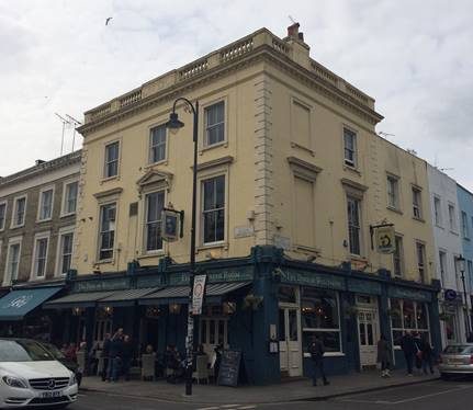 In the mid-20th century it was the Irish/West Indian local, known by many as the “Pisshouse”. After a spell as a bikers’ pub and the venue of the first Class War conference in 1983, the Colville was revamped as the upmarket Colville Rose and then the First Floor bar and restaurant. The First Floor closed in 2015. It was then taken over by the Ginstitute and given its present name. The exterior has been splendidly redecorated. It had a handsome Victorian interior, which included a magnificent first floor restaurant room with a wonderful chandelier and Victorian mouldings, unfortunately destroyed when the Ginstitute took over.